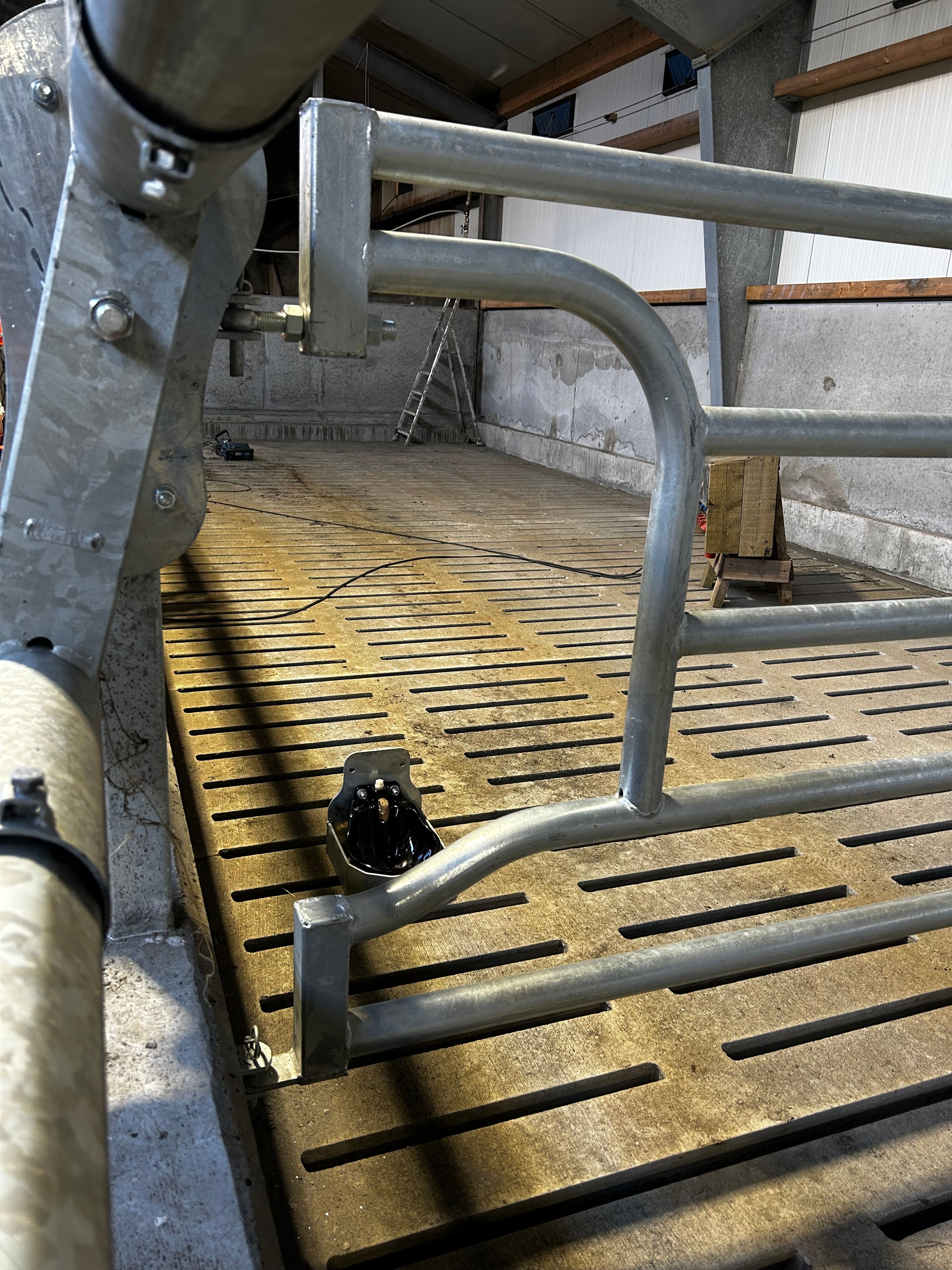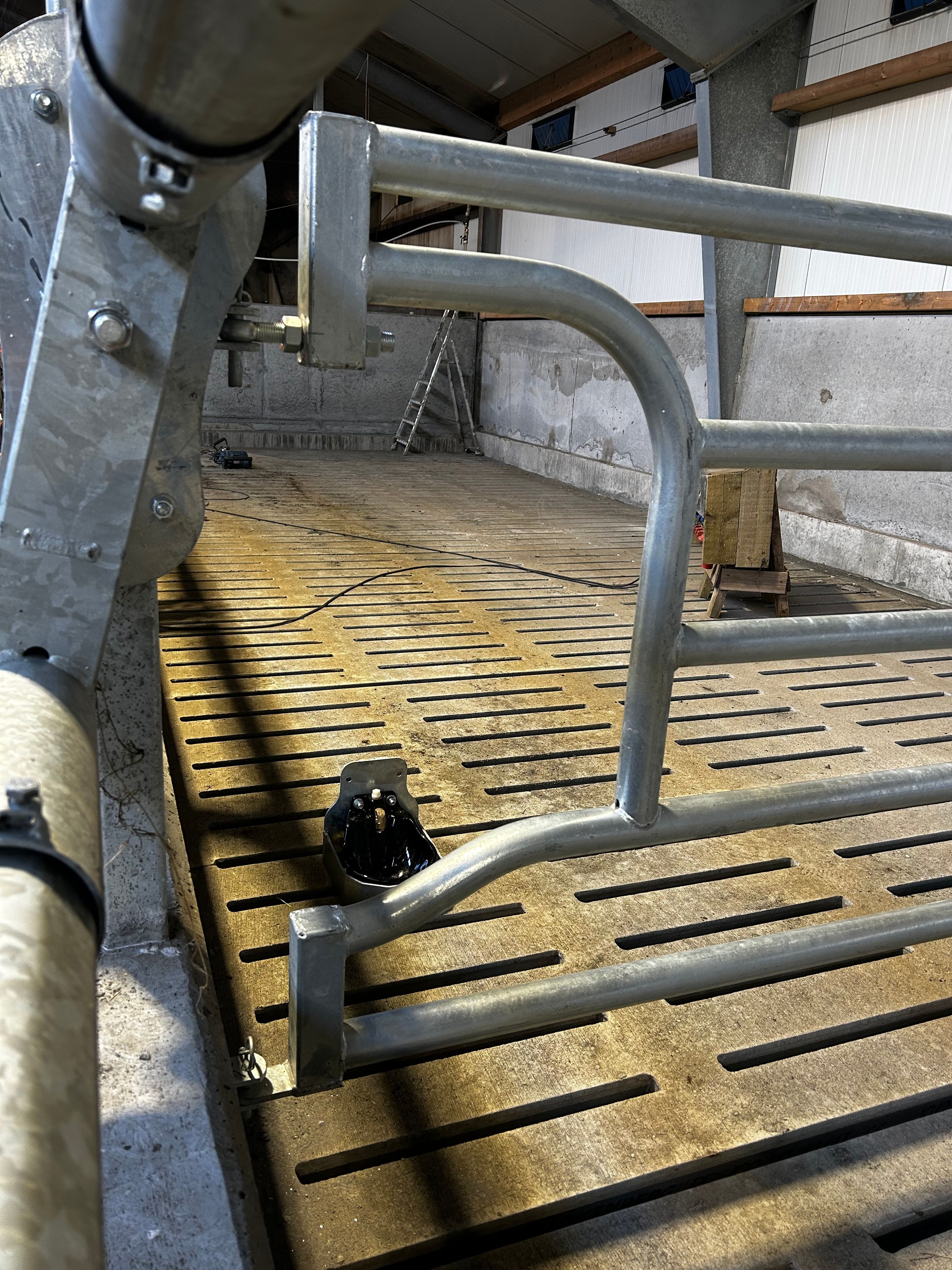 Milligerðin eru 5Bar access arch end með drink back valmöguleikanum. Gerir þetta okkur kleift að vernda drykkjaskálarnar á 2 vegur frá hnjaski nautgripanna. Því einnig var sett upp verndarhlíf í kringum drykkjaskálarnar.