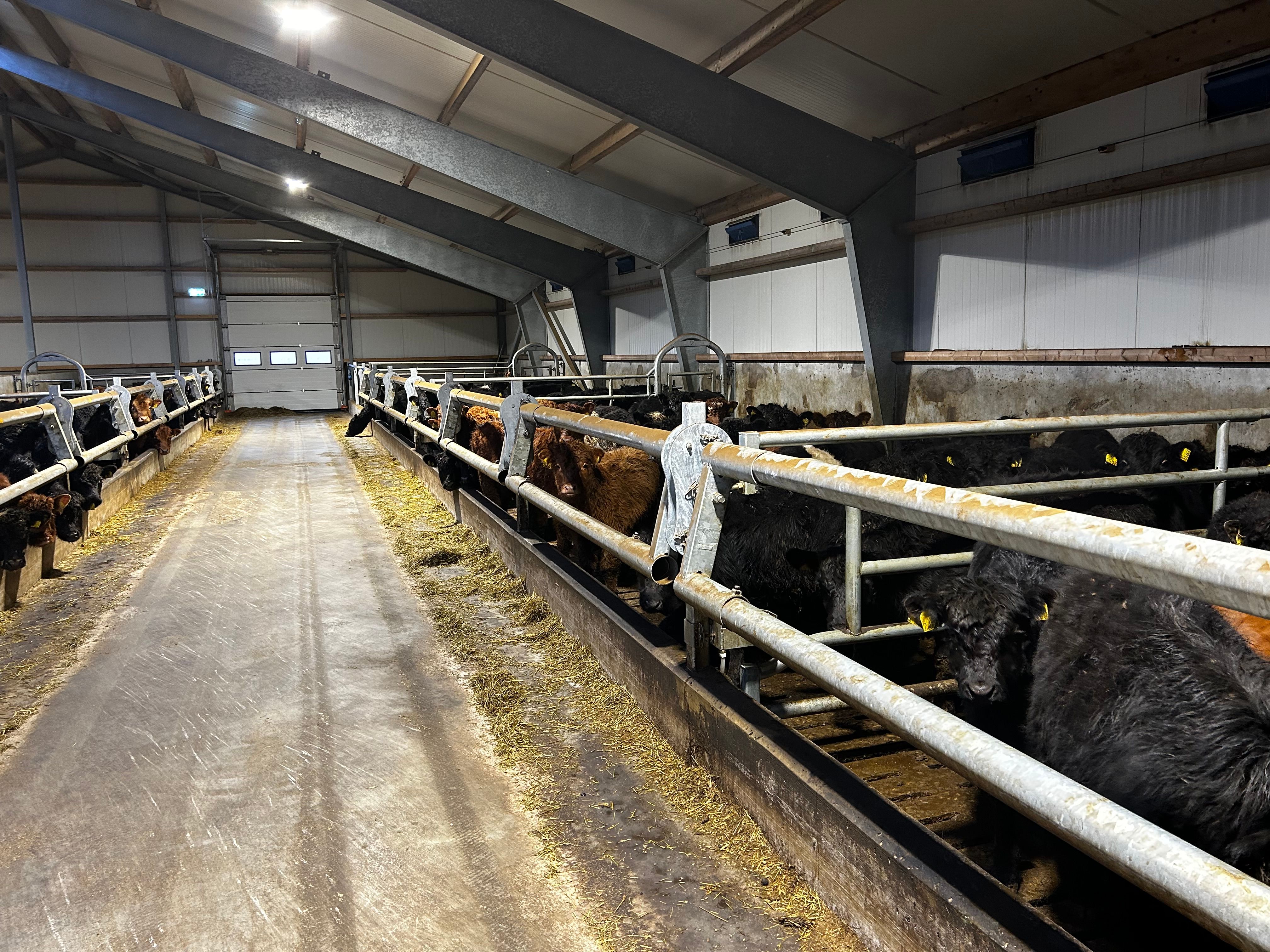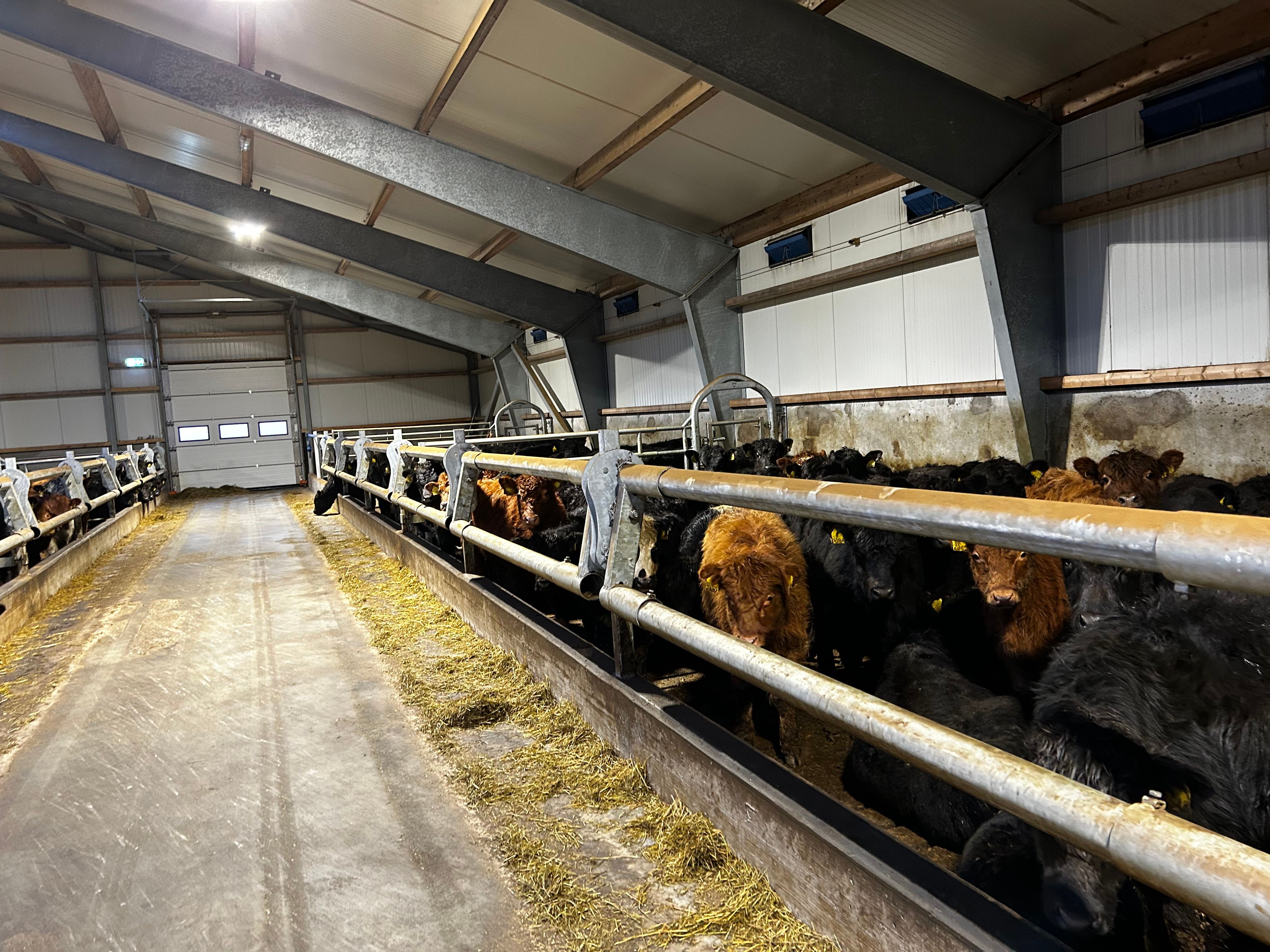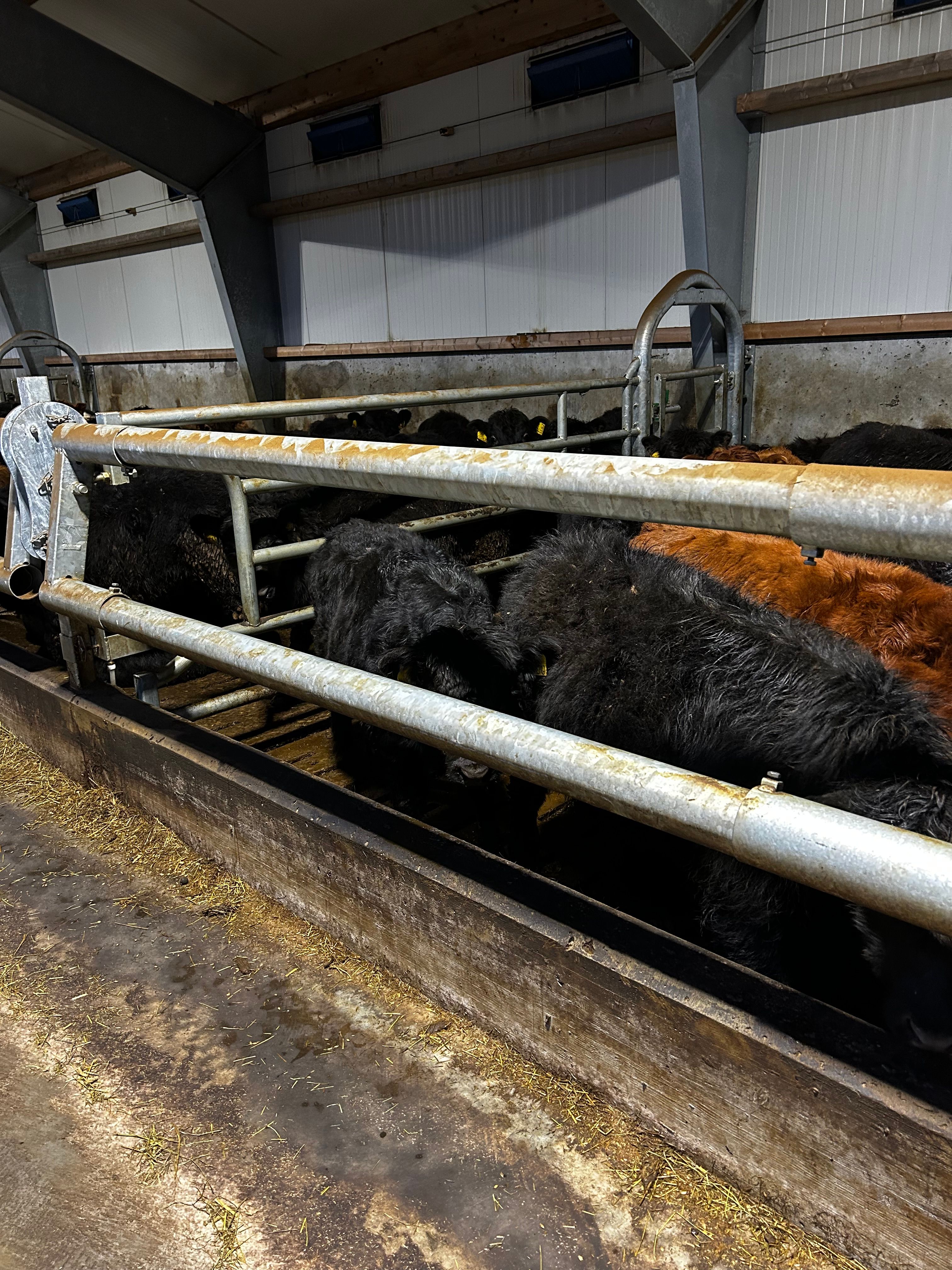 Fyrir valinu varð 2 bar feed rail frá Teemore með sérhönnuðum festingum svo hægt væri að stilla átgrindurnar þannig að bæði eldri og yngri gripir gætu verið í stíunum.